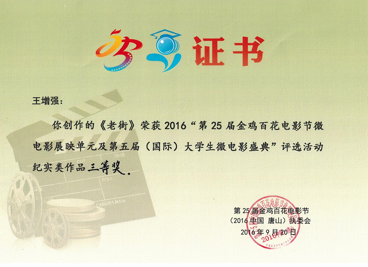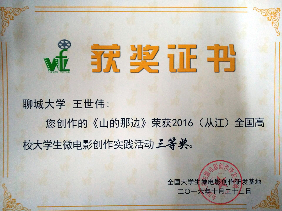 王世伟,全国大学生微电影创作实践活动三等奖