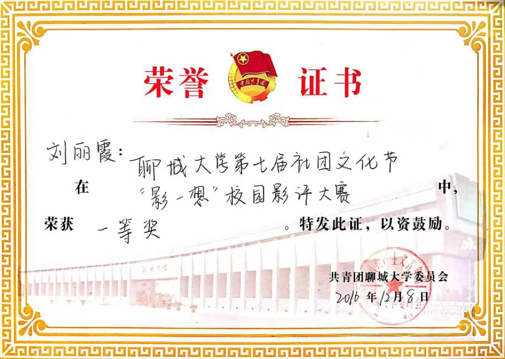 刘明霞 ”影一想“校园影评大赛 一等奖.