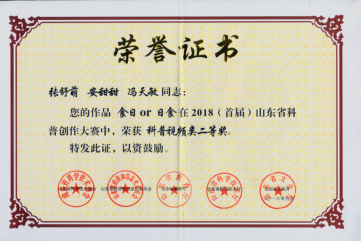 5月22日 刘丽霞获得第三十三届大学生科技文化艺术节微电影大赛二等奖