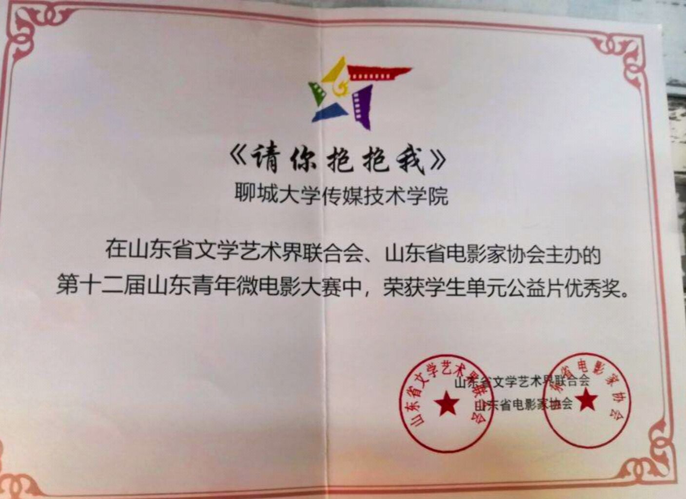 《请你抱抱我》获得第十二届山东青年微电影大赛优秀奖
