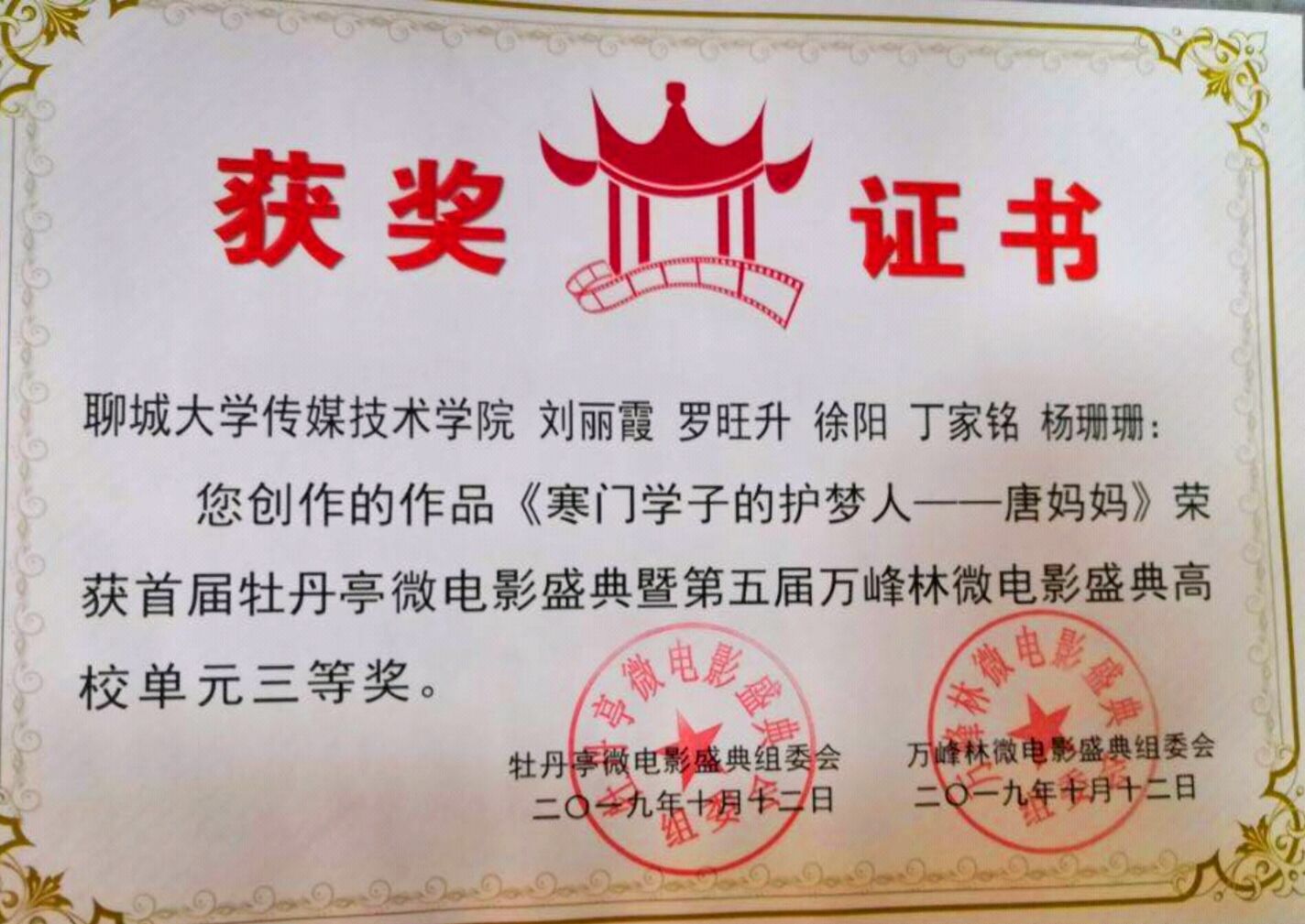12月 《寒门学子的护梦人——唐妈妈》荣获首届牡丹亭微电影盛典暨第五届万峰林微电影盛典高效单元三等奖
