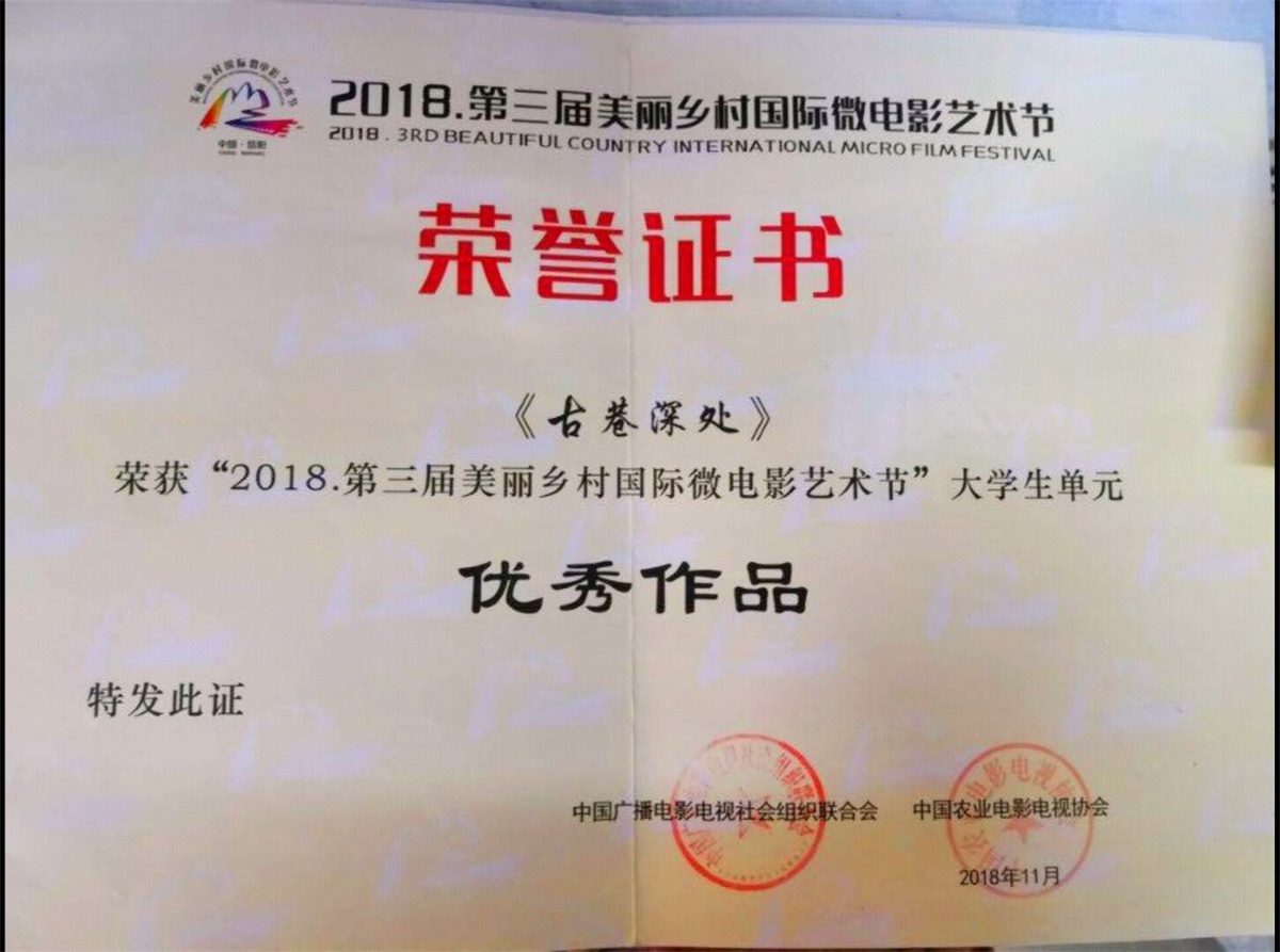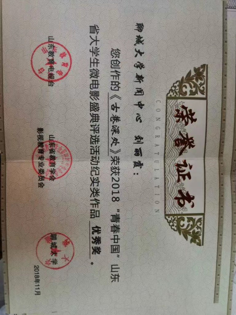 《古巷深处》2018“青春中国”山东省大学生微电影盛典评选活动纪实类作品优秀奖