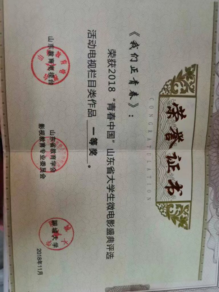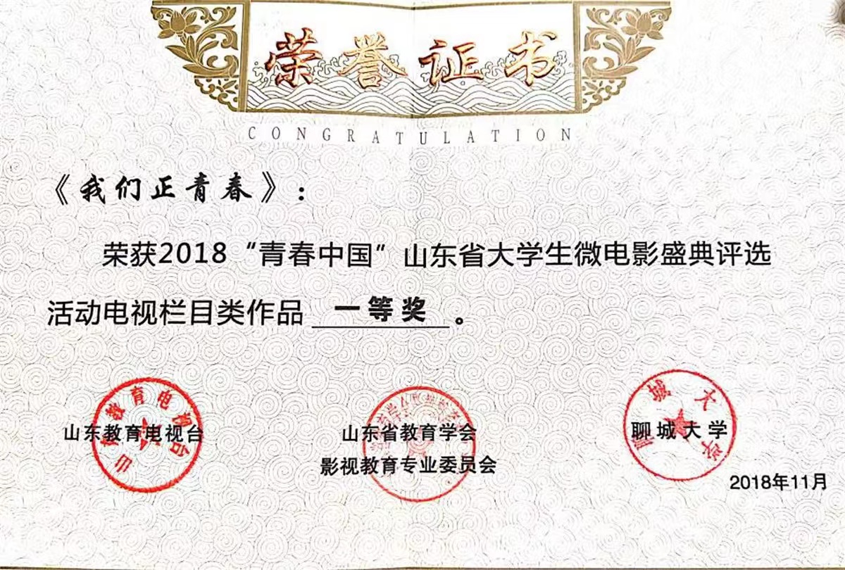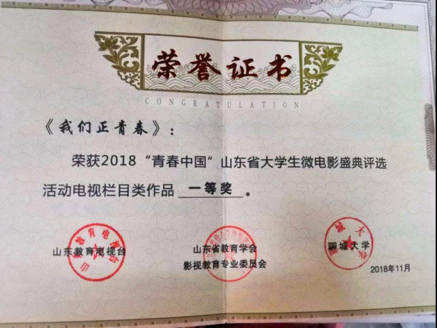 《我们正青春》,2018“青春中国”山东省大学生微电影盛典评选活动电视栏目类作品一等奖