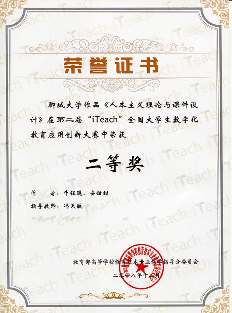 牛钰琨,ITech全国大学生数字化教育应用大赛二等奖