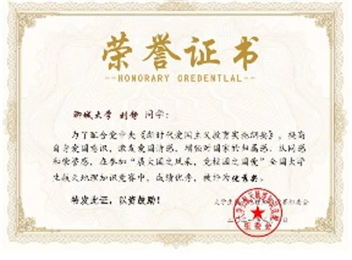 侯梦春,“学党史 强信念 跟党走”全国青少年红色文化传承展示活动优秀奖
