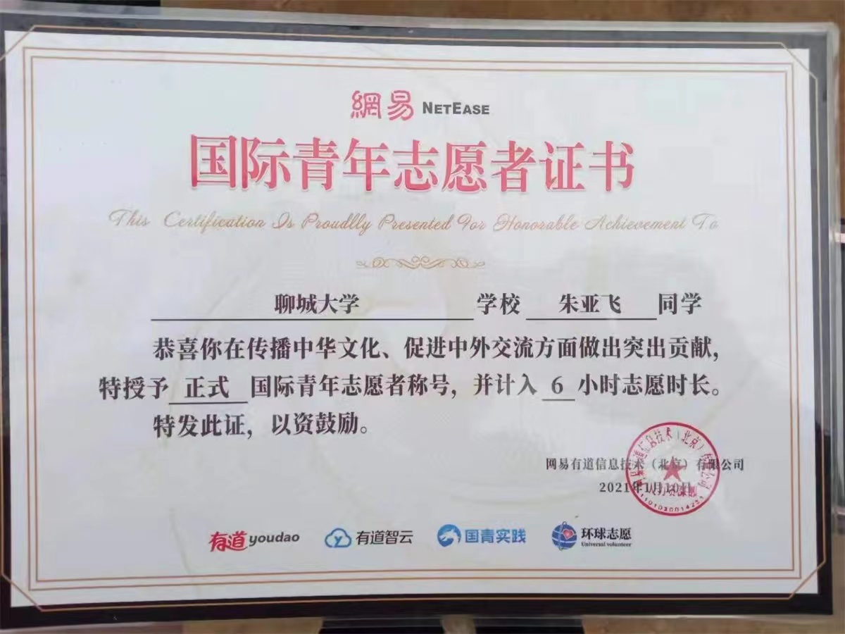王新蕊,第三届“青春中国”山东省大学生微电影大赛二等奖