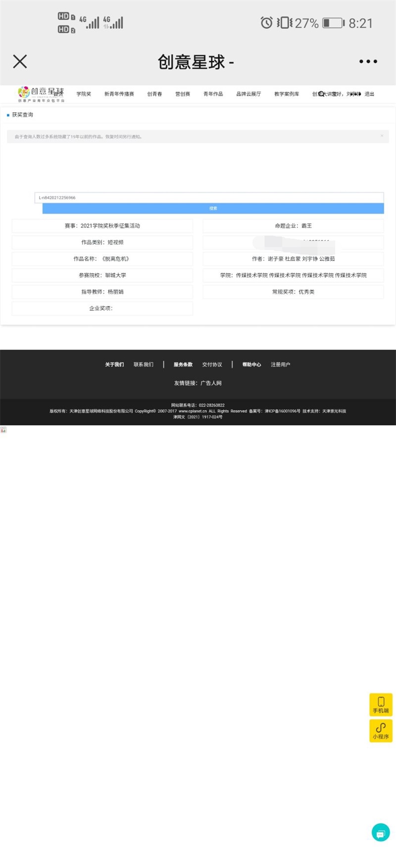郭方慧、王秀民,2021年“高校影视作品交流展映”活动三等奖