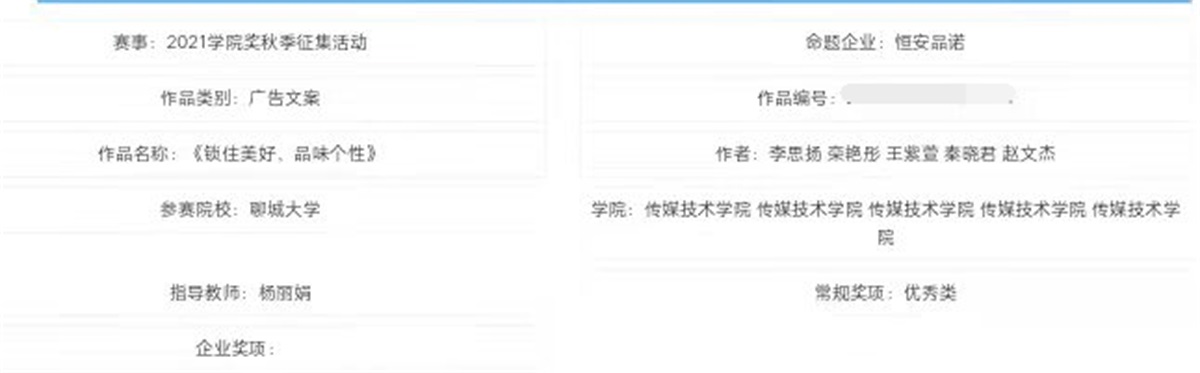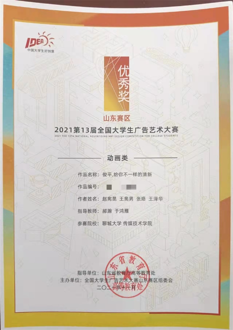 刘丽霞、李从睿,2021第13届大学生广告艺术大赛优秀奖(山东赛区)