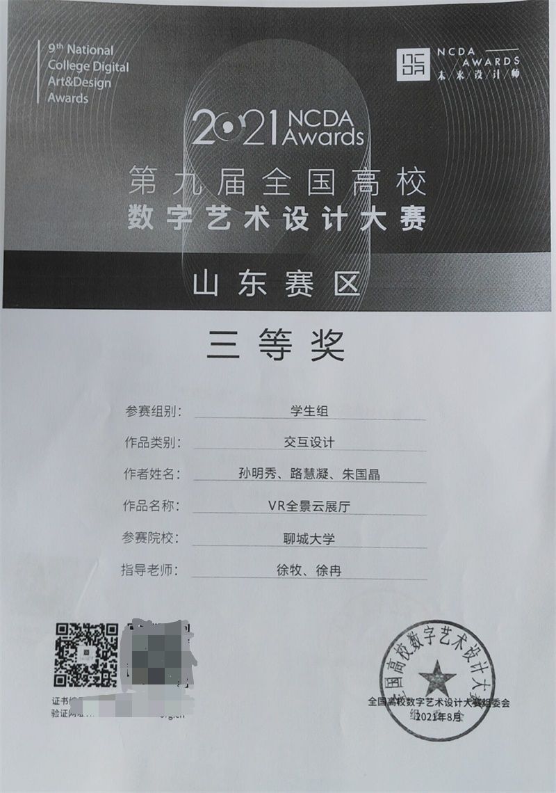 孙明秀。康云斐,第九届全国高校数字艺术设计大赛二等奖