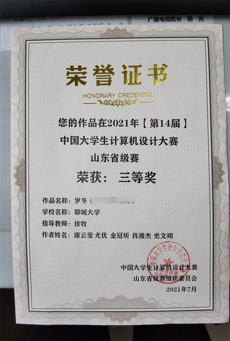 耿星宇、胡庆赟、温佳烁,第14届中国大学生计算机设计大赛二等奖
