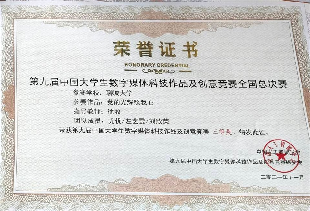 尤优、左艺雯、刘欣荣,第九届中国大学生数字媒体科技作品及创意竞赛三等奖
