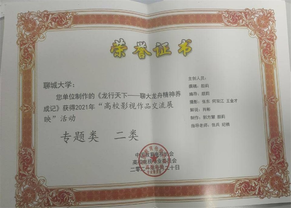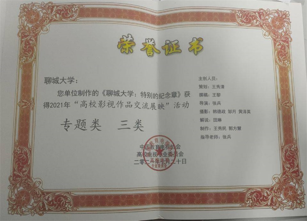 王秀民、焦红杰,2021年“高校影视作品交流展映”活动三等奖