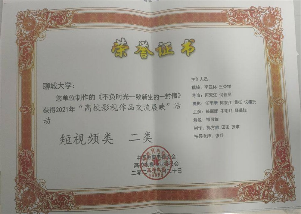 郭方慧、杨璐宁,2021年“高校影视作品交流展映”活动三等奖